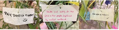 今年は書道体験コーナーを設け,参加者に毛筆による書道を楽しんでもらいました。上司の外国人に日本人職員が漢字の意味や筆の使い方,上司の名前の書き方を一生懸命教えているのが印象的でした。また,七夕が近いことから,会場には笹や短冊を用意し,参加者の皆様には願いごとを書いてもらいました。
