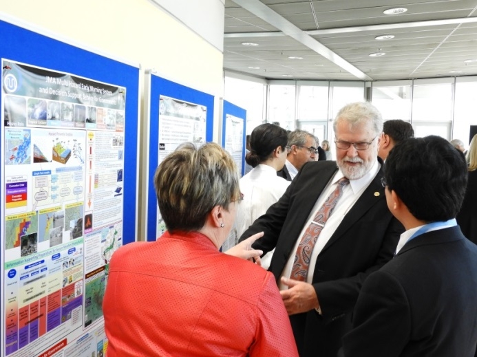 また,今回のレセプションでは,気象庁から,我が国が行っている防災における早期警戒の取組み,気象・防災業務における官民連携の仕組み,そして様々な気象に係る知見や技術に基づく我が国の国際協力・支援の実績に関するポスター展示を行いました。