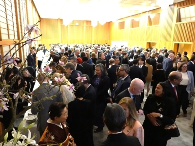 A reception in celebration of the Emperor’s birthday was held at the Mission of Japan on 4 March. The reception was jointly hosted by the Permanent Mission of Japan to the International Organizations in Geneva, the Delegation of Japan to the Conference on Disarmament, and the Consulate of Japan in Geneva. Ambassadors from other Permanent Missions and heads of international organizations in Geneva were among the approximately 430 guests in attendance.